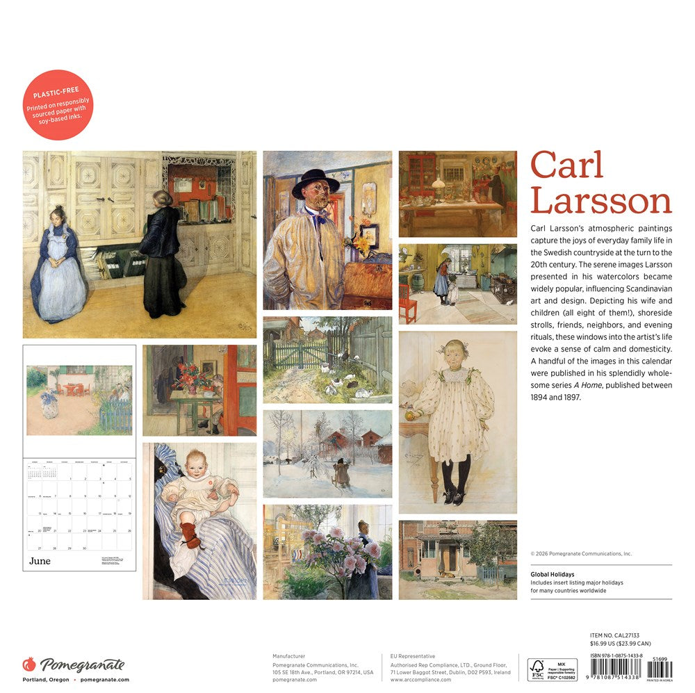 Carl Larsson's atmospheric paintings capture the joys of everyday family life in the Swedish countryside at the turn to the 20th century. The serene images Larsson presented in his watercolors became widely popular, influencing Scandinavian art and design. Depicting his wife and children (all eight of them!), shoreside strolls, friends, neighbors, and evening rituals, these windows into the artist's life evoke a sense of calm and domesticity. A handful of the images in this calendar were published in his splendidly wholesome series A Home, published between 1894 and 1897.