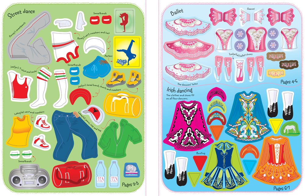 From street dance to samba, ballroom to ballet, dress the dolls for a variety of dances in this lively sticker book. Perfect for young lovers of dance, there are over 300 stickers of clothes, costumes and accessories to get the dolls ready for different kinds of dancing. - The number 1 bestselling sticker series with characters to dress and colorful scenes to decorate - Over 200 stickers in every book! - With 12 scenes to complete - Easy to remove perforated sticker pages for decorating each scene - Hours of enjoyment to stimulate any child's imagination - Develop children's concentration and fine motor skills - Ideal for ages 5+ - 44 pages of screen-free fun!