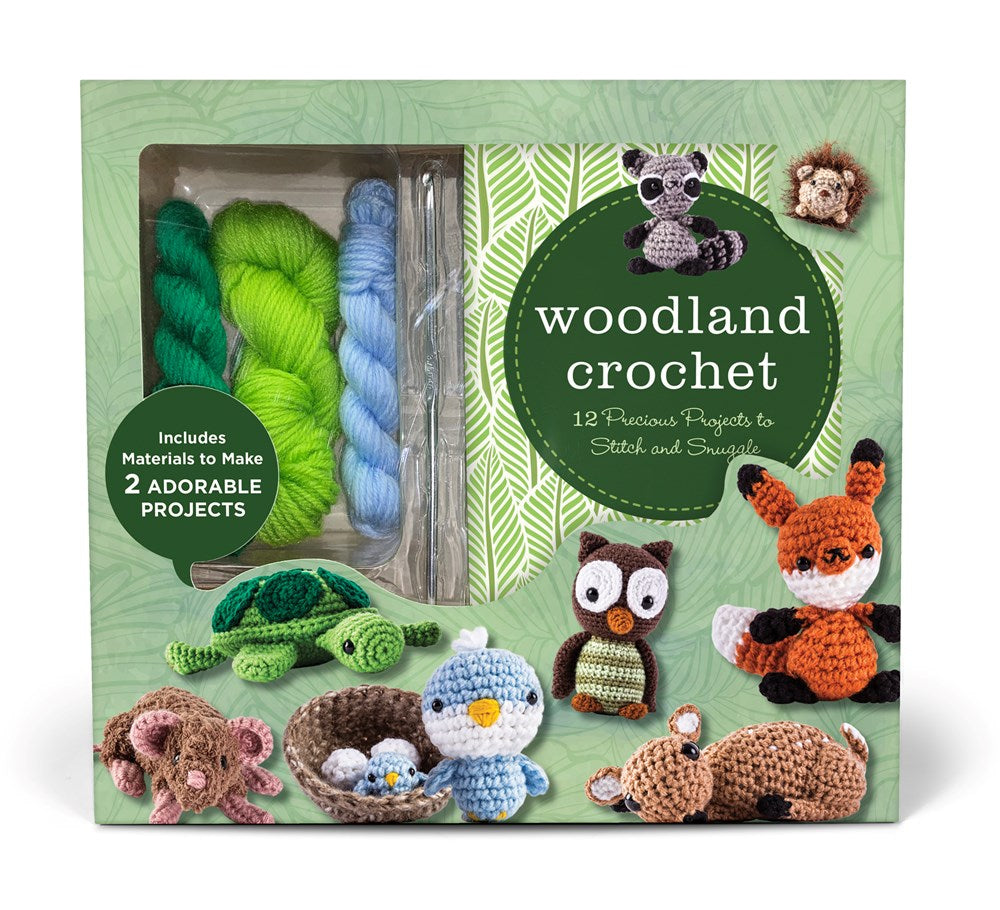 Woodland Crochet Kit includes adorable patterns to create 12 cute amigurumi animals and materials to complete two projects.